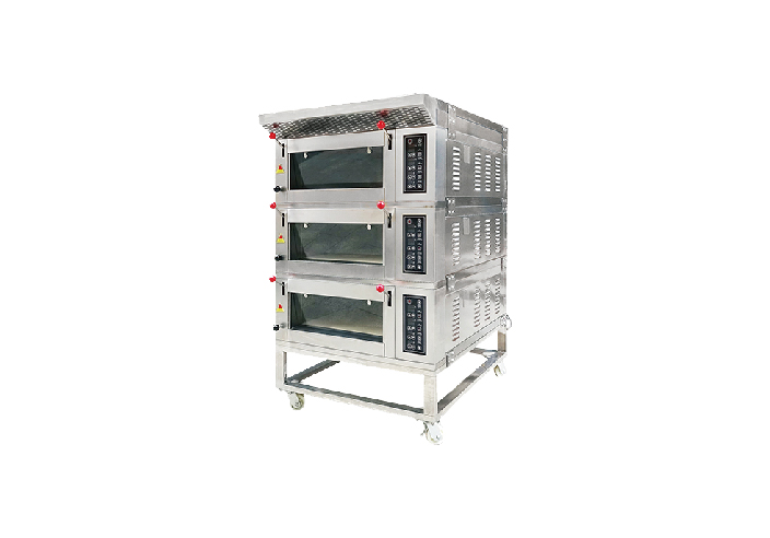 此系列電烤爐采用分層各自獨立控制結構,每一層的底火及面火均可以控制,因而烘烤質量特別理想,采用遠紅外輻射金屬電熱管為發(fā)熱元件,以熱輻射作用透入物體內(nèi)部,加熱速度快,被烤物品受熱均勻,色味兼優(yōu),符合食品衛(wèi)生標準。本產(chǎn)品主要用于烘烤面包及餅食等,是中小型糕廠(店)及工礦企業(yè)機關,學校等單位食堂最理想的設備。